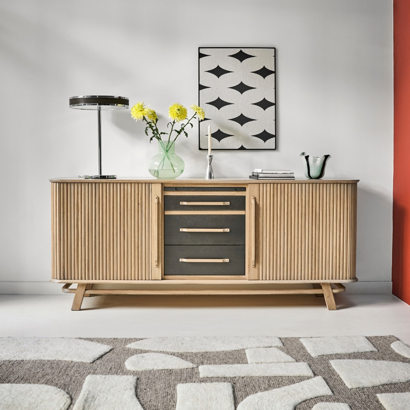 Avec ses portes coulissantes inspirées des anciens classeurs à rideau, le buffet TANGO séduit par ses lignes épurées et son look scandinave chaleureux, idéal pour un intérieur à la fois élégant et fonctionnel. Derrière son mouvement fluide se cache un espace de rangement généreux : vos objets déco, votre vaisselle ou vos affaires personnelles y trouvent leur place en toute discrétion. Son plateau supérieur offre également un espace parfait pour exposer vos plus belles pièces. Disponible en trois longueurs, le buffet TANGO s’adapte facilement à tous les espaces de vie. Le détail qui fait toute la différence ? Vous avez la possibilité de personnaliser ses portes ou sa partie centrale avec la couleur de votre choix ! Complétez votre univers avec les autres pièces de la collection et créez un intérieur harmonieux et chaleureux.